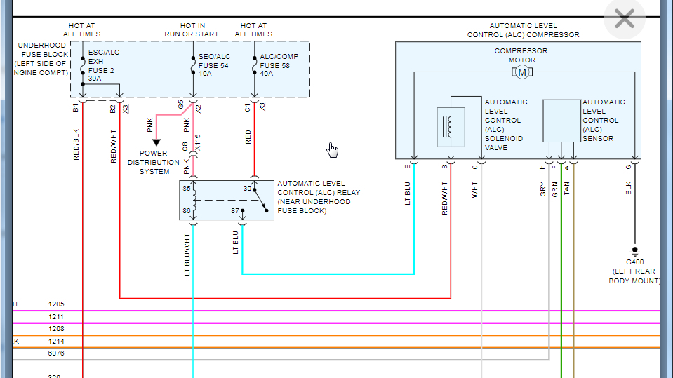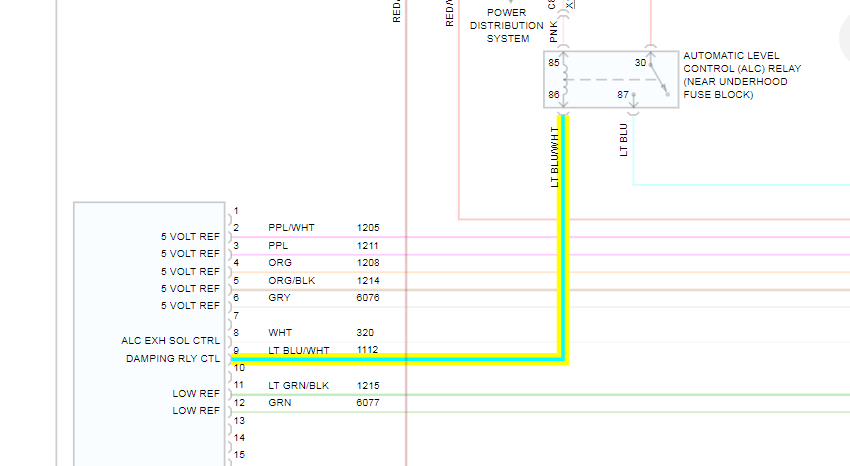 Then install the relay and tell me the voltage on the light blue/white wire at the suspension control module which is on the left rear of the frame.